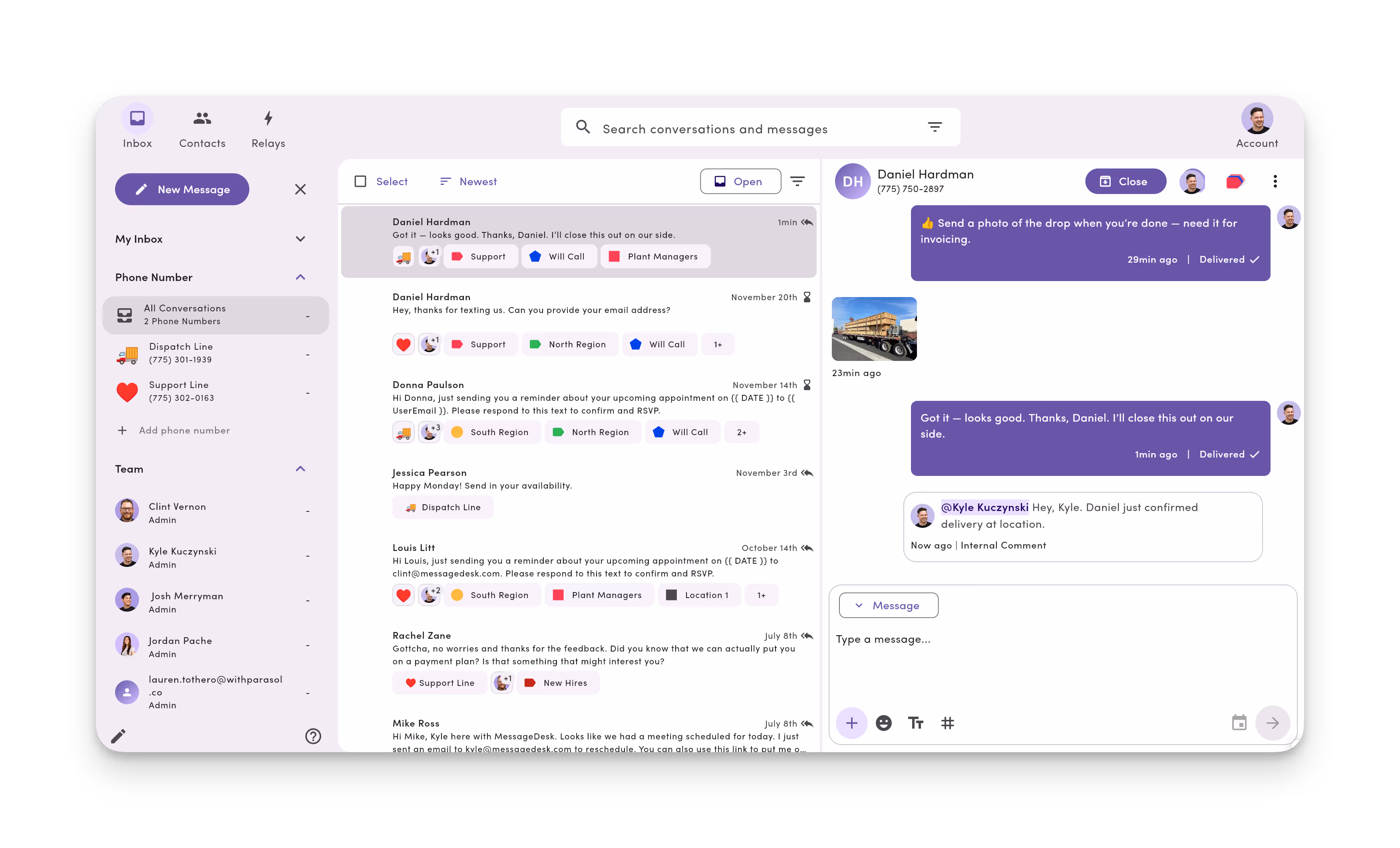 No more missed texts, unreturned calls, or messy inboxes. MessageDesk keeps every update, reply, and reminder in one easy-to-manage place.